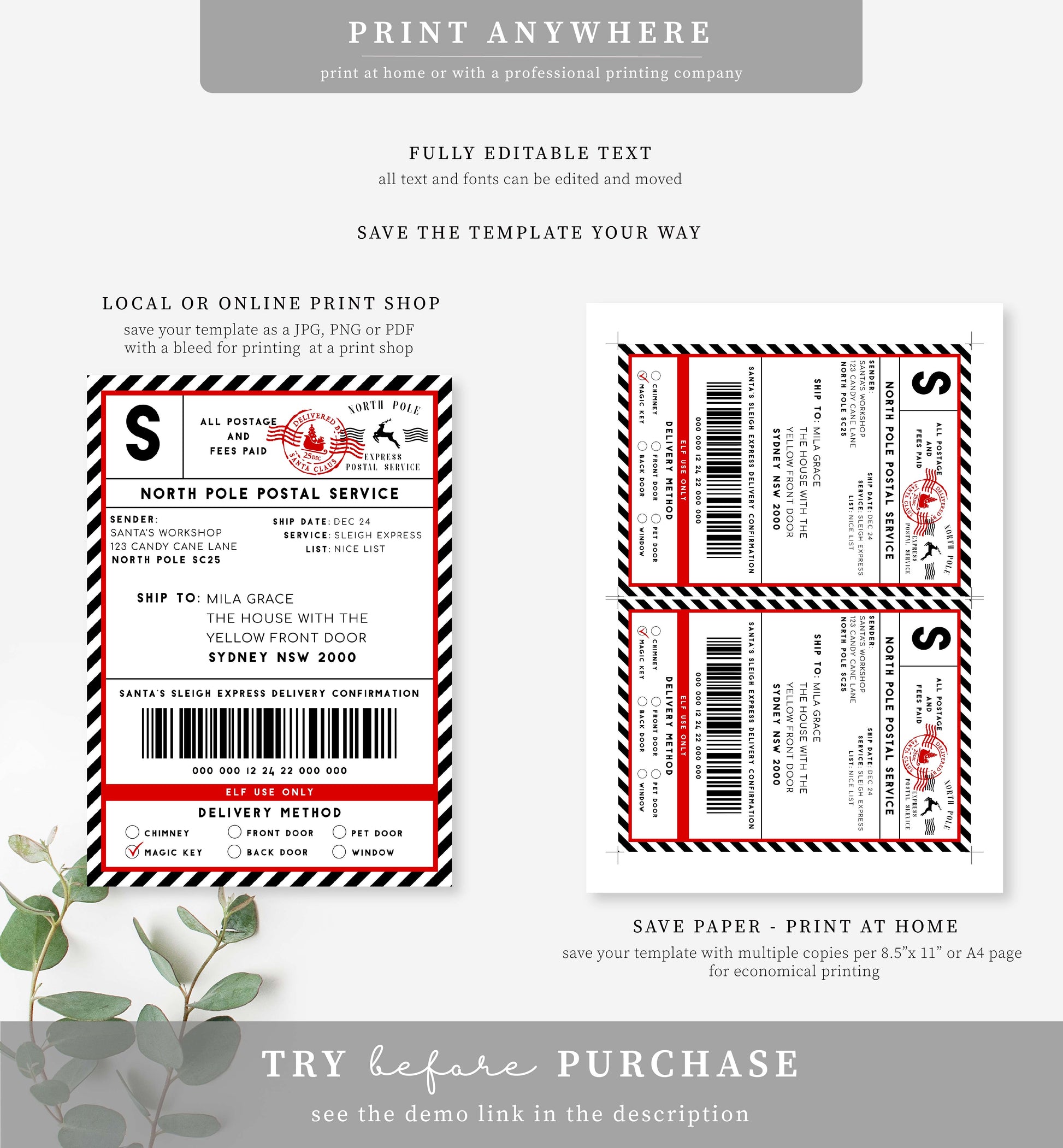 This printable North Pole Express Christmas shipping label template is the perfect way to add a little extra magic to your Christmas wrapping. The shipping label template has fully editable text that can be personalised with your child's name and address.