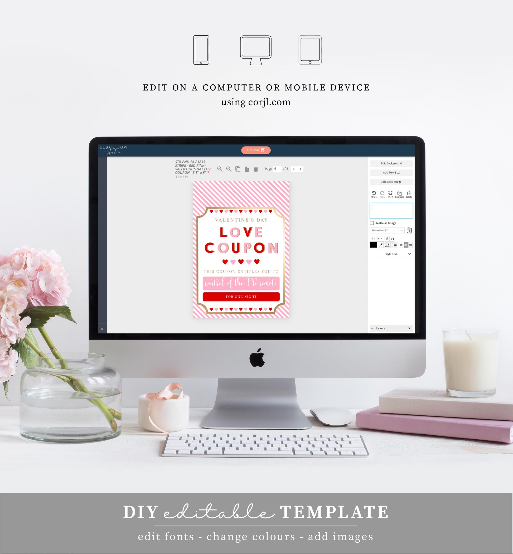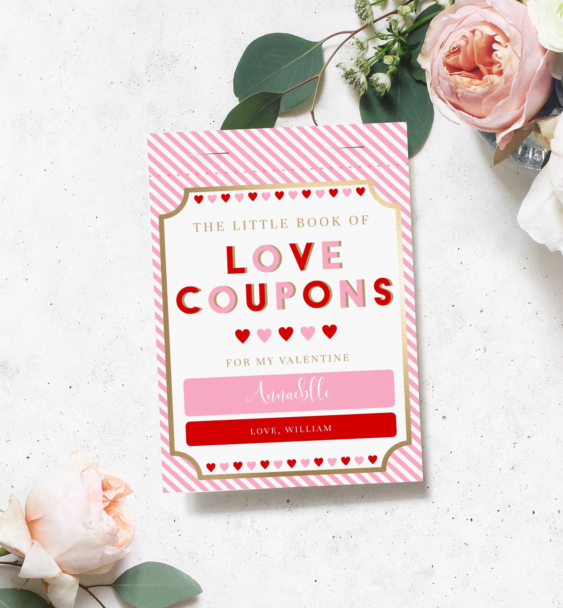 Stripe Pink Red | Printable Valentine's Day Custom Love Coupons Template